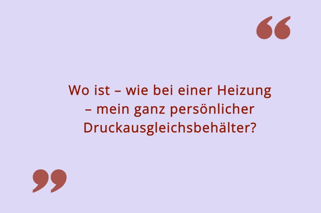 Mir steht die ganze Welt offen. Bloß kein Stress. Wo ist – wie bei einer Heizung – mein ganz persönlicher Druckausgleichsbehälter? Den schaffe ich mir selbst: eine Runde laufen, kochen, ein Abend mit meiner WG, eine Runde Karten, ein Spaziergang oder ein Heißgetränk mit einer Freundin. Mama anrufen, mich kurz ausheulen, dann weiter machen.