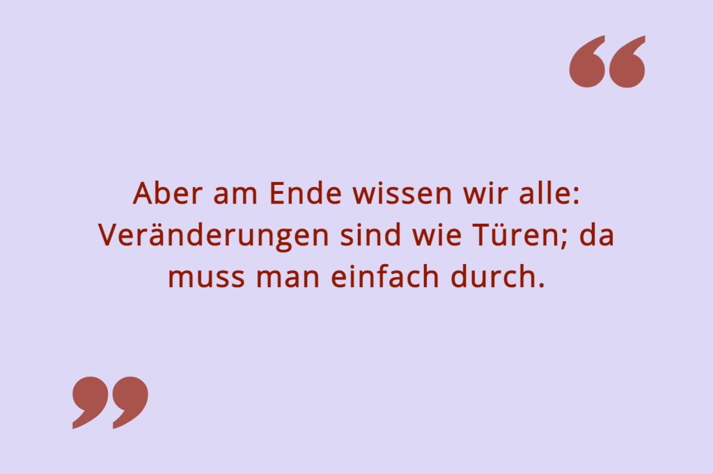Oder sind wie ich und merken erst spät, dass sich alles verändert hat. Aber am Ende wissen wir alle: Veränderungen sind wie Türen; da muss man einfach durch.