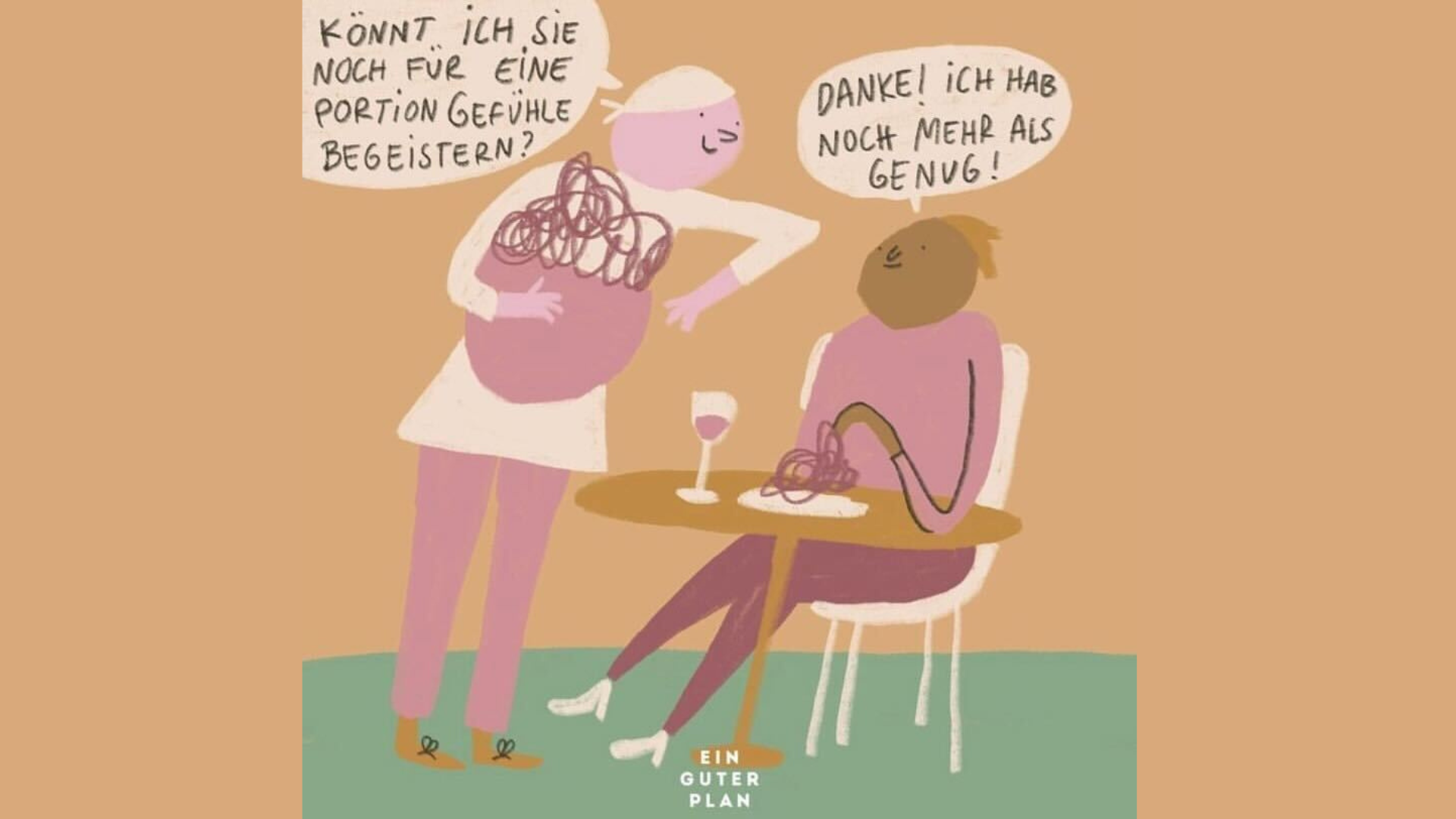 Diese Angewohnheit ist mir bis heute geblieben, sie ist nur viel intensiver geworden. Ich bin nicht gut darin, Gastgeberin zu sein, weil ich mir 24/7 Gedanken mache, ob‘s allen gut geht. Ich bin eine absolute Ober-Helikopter-Mom, wenn Leute, die sonst nie kiffen, plötzlich auf die Idee kommen, an einem Joint ziehen zu wollen. Nein wirklich – ich bin instant paranoid, beobachte jeden Zug und frage 34 Mal, ob auch sicher noch alles okay ist. Bei Filmen habe ich ehrliches Mitleid mit den größten Arschlöchern, ja sogar mit Mörder:innen, wenn sie dann irgendwann total am Boden sind. Und wenn ich in einen Raum komme, in dem eine mir nahestehende Person weint, muss ich in bestimmt 78% der Fälle auch weinen.