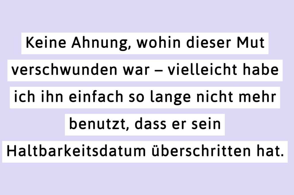 Jahrelang habe ich mich daran nur mit einem Schulterzucken erinnert. Witzig, wie mutig man als Kind doch ist, dachte ich mir dann. Erst als ich mich nach der Schule in neue Kontexte, wie Job oder Uni, begeben musste, ist mir aufgefallen, dass ich so gar nichts mehr von diesem kindlichen Mut in mir trage, der für mein dreijähriges Ich damals ganz selbstverständlich war.