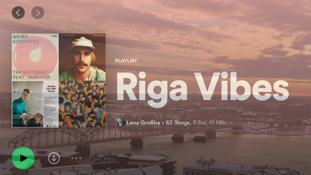 Kurz bevor ich in mein Auslandssemester nach Lettland startete, habe ich eine neue Spotify-Playlist erstellt: Riga Vibes. Damals war der Plan, dort Lieder zu sammeln, die ich in Riga neu entdecken würde und die mich an die Erasmus-Zeit erinnern könnten. Fun fact: In Riga stößt man eher auf Lieder, die in Deutschland schon seit fünf Jahren in Vergessenheit geraten sind als auf irgendetwas Neues. So hat sich die Playlist zu einer Art musikalischem Fotoalbum entwickelt mit 62 Songs, die 62 Momente einfangen und mich direkt in diese Momente zurück katapultieren. Hier eine Auswahl.