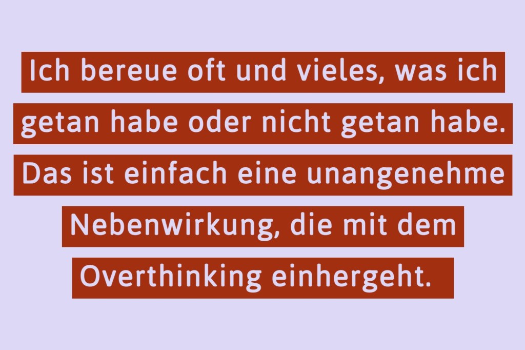 Das Bedürfnis, alles genauestens zu durchleuchten, jede noch so kleine Gefahr aufzuspüren und dafür gewappnet zu sein. Sich alle möglichen Szenarien auszumalen und zu überlegen, was passieren würde, wenn das Worst-Case-Szenario dann wirklich eintrifft. Oder auch der Hang dazu, Situationen, die längst vergangen sind, immer wieder zu überdenken und das eigene Verhalten dabei zu analysieren. Sich Fehler, die man irgendwann mal gemacht hat, immer wieder vor Augen zu führen und davon nicht loszukommen: All das sind typische Muster des Overthinkings.